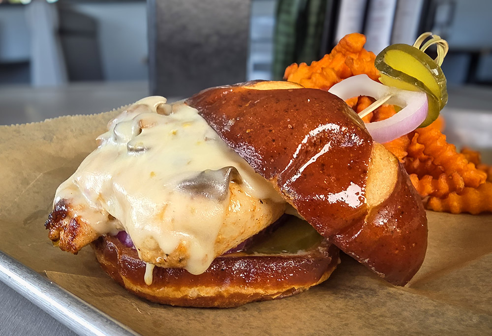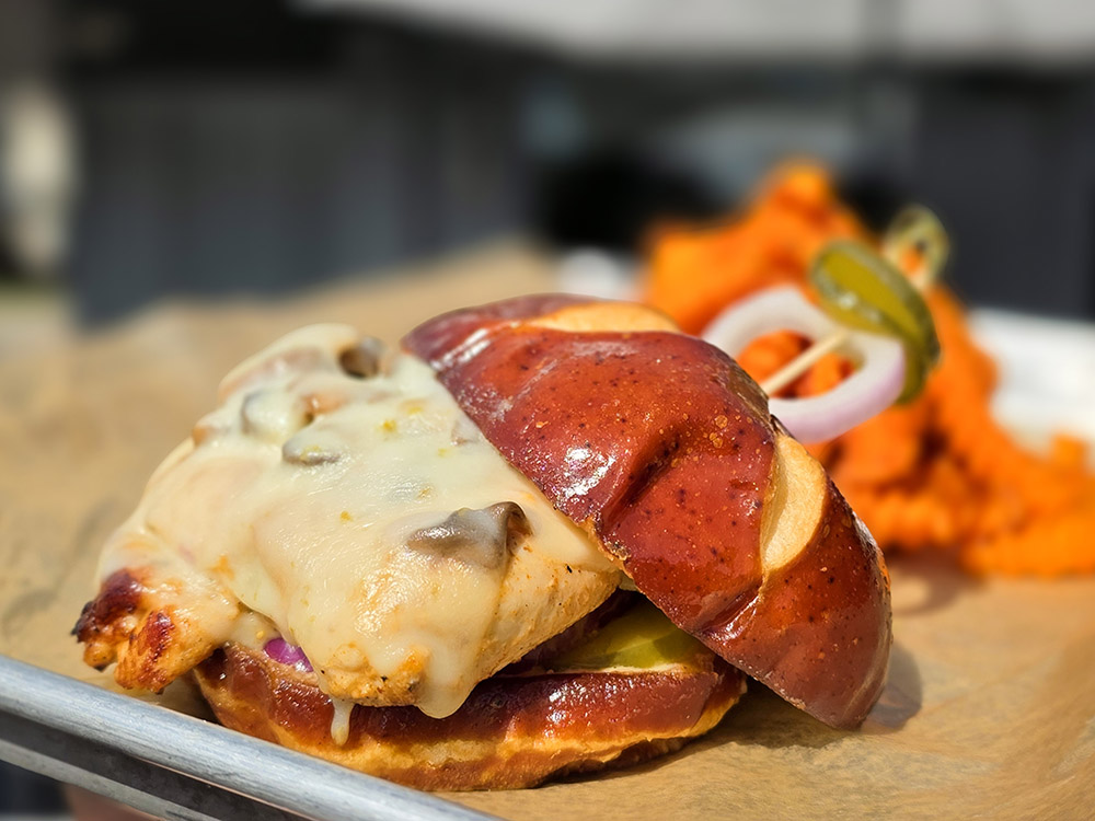 ๐ ๐๐ก๐ข๐๐ค๐๐ง ๐๐ฎ๐ซ๐ ๐๐ซ โ Marinated Chicken Breast, Pepper Jack Cheese, Sautรฉed Mushrooms, Red Onion, Pickle & Garlic Aioli. Flavor-packed and grilled to perfection!